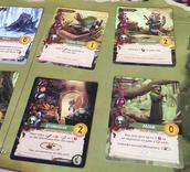 An exciting aspect of Everdell that provides vast replayability is that it uses a variable setup, meaning that the game is different every time you play. During setup, special Forest Locations are drawn at random and placed on the game board to provide powerful actions to workers outside of the Basic Locations that exist. Additionally, Special Events are randomly drawn and placed on the giant cardboard Ever Tree. Special Events are contracts that provide victory points upon fulfillment; they require specific Construction and Critter cards to be played in a city before a player can acquire them by placing a worker on the event. Basic Events are the same in each game, requiring less specific types of cards to be played in a city to be achieved. Lastly, there is a Meadow on the board available to all players, like a bank or universal hand of cards, filled from the shared deck at the beginning of the game with eight cards.